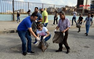 بدأت على الكورنيش البحري بمدينة طرطوس اليوم حملة نظافة تستمر أسبوعاً بمشاركة طلاب من المدارس الثانوية وجامعة طرطوس ومتطوعين.