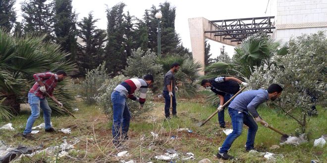 حملة نظافة في كليتي الحقوق والاقتصاد وتكريم الفائزين بالمسابقة البيئية في درعا