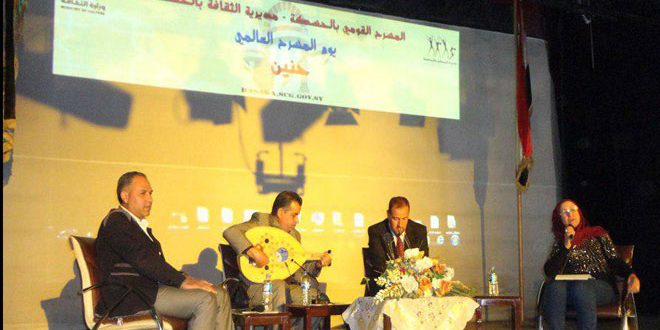 على خشبة المسرح في المركز الثقافي العربي بمدينة الحسكة امتزجت ألحان العود بقصائد الشعر الفصيح والشعبي ومواويل الغناء في العرض حنين الذي قدمه المسرح القومي في الحسكة اليوم بالتعاون مع مديرية الثقافة على خشبة المركز الثقافي العربي في المدينة.