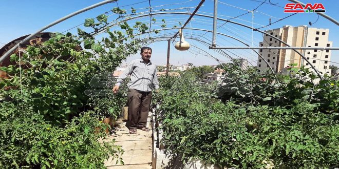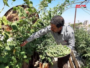 ضمن مساحة صغيرة لا تتجاوز ثلاثين متراً مربعاً على سطح منزله بمدينة السويداء بدأ الرجل الستيني أسامة الجباعي بإنتاج الخضار والمحاصيل الصيفية وذلك بعد نحو شهرين على إطلاق تجربته التي تشكل نموذجاً مهما للزراعات على الأسطح ضمن المدن وضرورة تشجيعها.