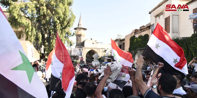 حي الشاغور الدمشقي…. حشود المواطنين وعراضات شامية وأهازيج في مراكز الاقتراع في الانتخابات الرئاسية 2021-05-26