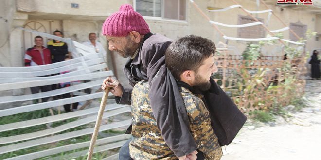 قامت وحدات من الجيش العربي السوري صباح اليوم بتأمين خروج آلاف المدنيين المحتجزين لدى التنظيمات الارهابية في القطاع الشمالي من الغوطة الشرقية بريف دمشق عبر الممر الآمن المؤدي الى مخيم الوافدين.