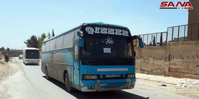 خروج دفعة حافلات من دوما على متنها عدد من إرهابيي جيش الإسلام وعائلاتهم تمهيدا لنقلهم إلى جرابلس 2018-04-02