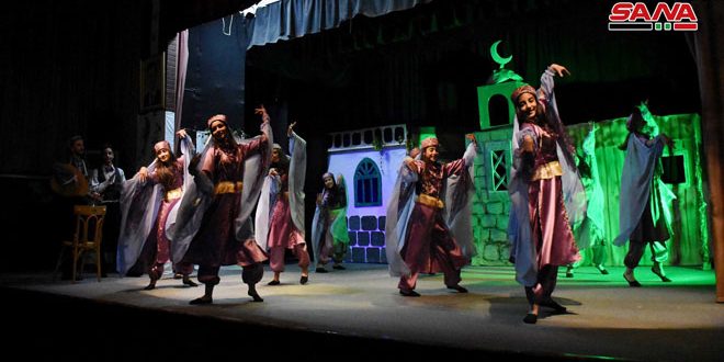 قدم 40 طالبا وطالبة من مختلف مدارس حمص عرضا مسرحيا ضمن احتفالية يوم المسرح العالمي التي تقيمها دائرة المسرح المدرسي في المحافظة بعنوان “سهرة مع أبي خليل القباني” على خشبة الشهيد عبد الحميد الزهراوي.