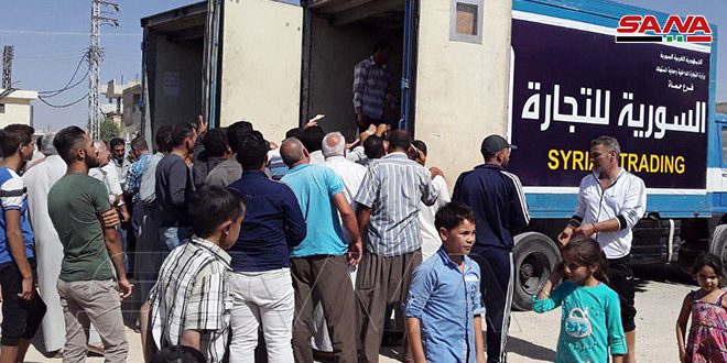 دعما للأسر العائدة لمنازلها بالمناطق المحررة بريف حماة الشمالي.. السورية للتجارة تؤمن السلع بأسعار مناسبة 2019-10-11