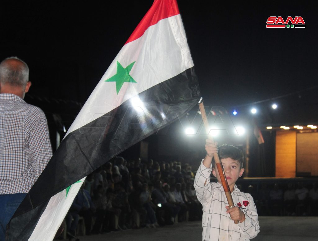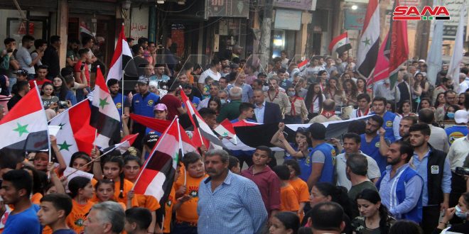 وتخلل الفعالية ترديد كلمات وهتافات وطنية معبرة عن شموخ سورية وصمود شعبها وأهمية المشاركة بالانتخابات في وقتها الدستوري بكل شفافية للرد على أعداء سورية بالطريقة المثلى.