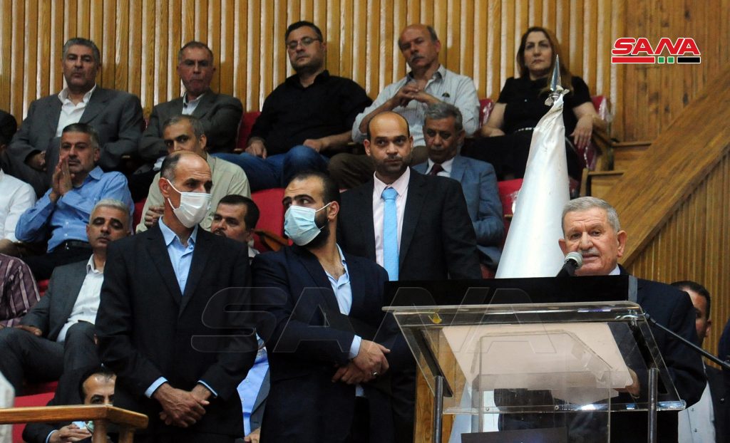رئيس الاتحاد العام لنقابات العمال جمال القادري أكد في كلمة له أن العمال سيشاركون في الانتخابات وفاء للوطن وتضحيات الجيش العربي السوري كما كانوا دائما من خلال صمودهم في معاملهم ومنشاتهم لافتا إلى أن السوريين متمسكون بقرارهم السيادي وإرادتهم التى لم يكسرها الإرهاب ولا الشدائد.