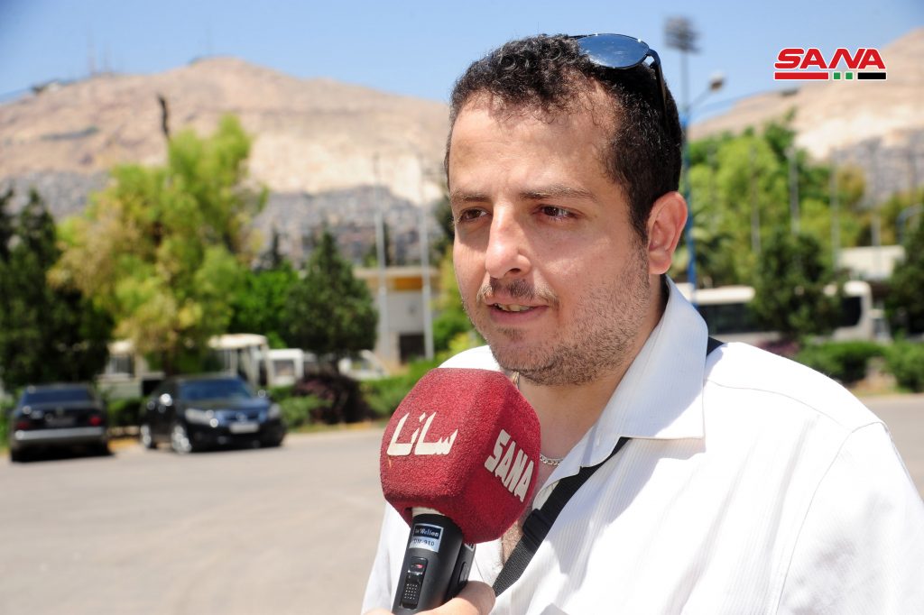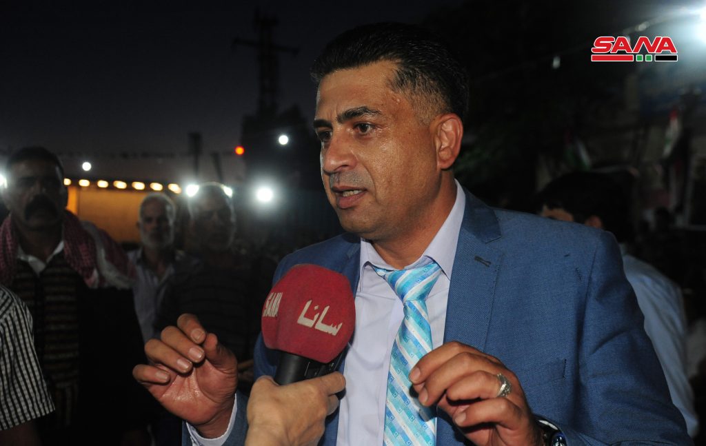 رئيس المجلس البلدي في دير العصافير حسان الحسن بين أن أهالي الغوطة الشرقية باجتماعهم اليوم يؤكدون أن الوطن يستحق منهم أن يكونوا أمناء عليها لإيصال الشخص الذي يستحق لمقام رئاسة الجمهورية ولن يبخلوا بأصواتهم ودمهم في سبيل حماية الوطن.