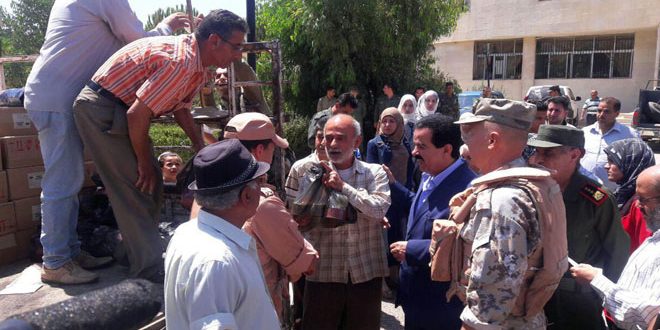 وثمن محافظ القنيطرة أحمد شيخ عبدالقادر خلال مشاركته في التوزيع بوقوف روسيا الاتحادية حكومة وشعبا إلى جانب سورية في حربها ضد الإرهاب العالمي وحق السوريين في الدفاع عن أرضهم.