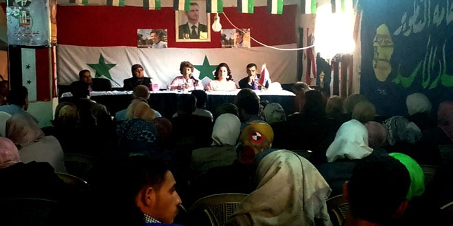 بدورها اكدت عضو قيادة فرع درعا لحزب البعث العربي الاشتراكي رئيس مكتب الشباب /فيروز العيد/ دور الشباب في تعزيز صمود الجيش العربي السوري من خلال الوقوف خلفه بالكلمة ومتابعة تحصيلهم العلمي وتوظيف طاقاتهم في سبيل بناء الوطن.