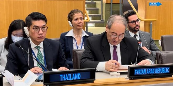 وأكد المقداد خلال كلمة حق سورية في استعادة الجولان السوري المحتل كاملاً حتى خط الرابع من حزيران لعام 1967 وفقا لقرارات الأمم المتحدة ذات الصلة مجدداً موقف سورية الثابت والمبدئي الداعم للقضية الفلسطينية وحق الشعب الفلسطيني في تقرير مصيره وإقامة دولته المستقلة وعاصمتها القدس.