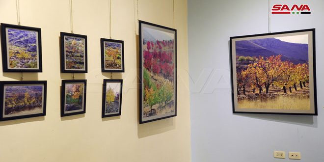 يلفت نظر زوار معرض رؤى وانطباعات للفنان الفوتوغرافي أنطون مزاوي وفنانة التطريز تامار شاهينيان أوراق أشجار الخريف على مدخل وأدراج صالة زوايا التي تحاكي في صور متنوعة الأحجام بين الكبير والمتوسط فصل الخريف بصورة مبهرة لتضيف إليها الفنانة شاهينيان التطريز وأوراق الأشجار لتزيدها جمالاً.