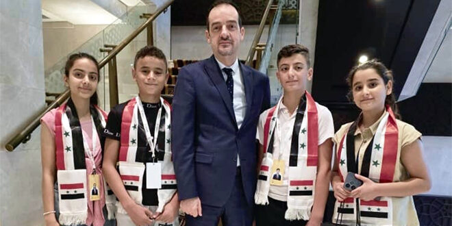 التقى رئيس البعثة في السفارة السورية بأبو ظبي الوزير المستشار وائل إسماعيل الخليل مع أطفال الوفد السوري المشاركين في “البرلمان العربي للطفل” في إمارة الشارقة حيث استمع إلى آرائهم وانطباعاتهم حول الفعاليات والأنشطة التي ينظمها البرلمان.