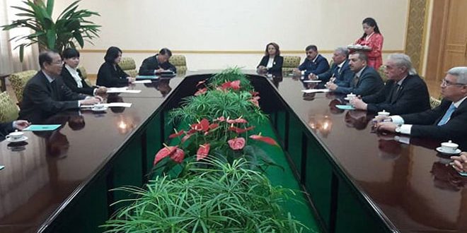 بحث وفد مجلس الشعب مع رئيس مجلس الشعب الأعلى في جمهورية كوريا الديمقراطية (تشي تيه بوك) أمس سبل تطوير العلاقات بين البلدين وذلك ضمن زيارة الوفد السوري إلى كوريا الديمقراطية.