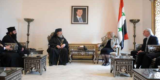 جاء ذلك خلال لقائها اليوم رئيس أساقفة قبرص كريسوستوموس الثاني حيث لفتت رئيسة المجلس إلى أن الشعب السوري يخوض معركة خطيرة في مواجهة الإرهاب بكل أشكاله الذي يتمثل بأحد جوانبه بقطع العلاقات والعقوبات الاقتصادية الجائرة مشيرة إلى الانعكاسات السلبية للسياسات الخاطئة للدول الأوروبية على أمنها واستقرارها.