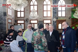 كما اطلع رئيس مجلس الوزراء على أوضاع العائلات المتضررة والمستضافة في جامع صوفان بمدينة اللاذقية مستمعاً إلى احتياجاتهم والخدمات الإغاثية المقدمة لهم.