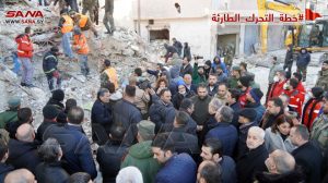 تفقد رئيس مجلس الوزراء المهندس حسين عرنوس الأعمال المستمرة لرفع الأنقاض والبحث عن الناجين والضحايا جراء الزلزال في المباني المهدمة بحي الرمل الجنوبي في مدينة اللاذقية.