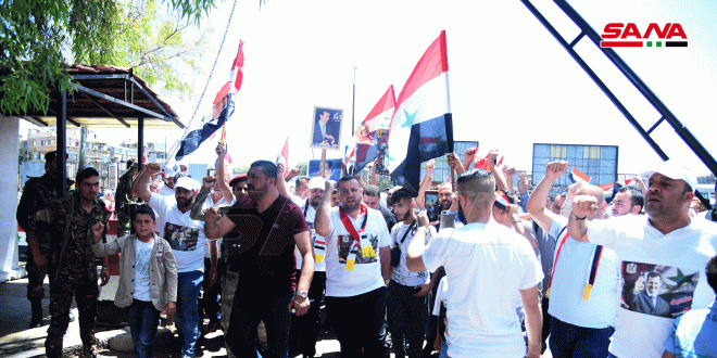 أكثر من مئة بين شباب ورجال من آل الحساني توافدوا إلى المركز الانتخابي في مقر سانا مرددين هتافات وطنية ومعربين عن حبهم وتمسكهم بالوطن وسيادته حيث قال أحمد الحساني.. جئنا لنعبر نحن مع من يحمي سورية ويحافظ على سيادتها وجئنا لنقول للعالم.. إن خيارنا مع الوطن وللوطن رغم أنف كل الأعداء والطامعين.