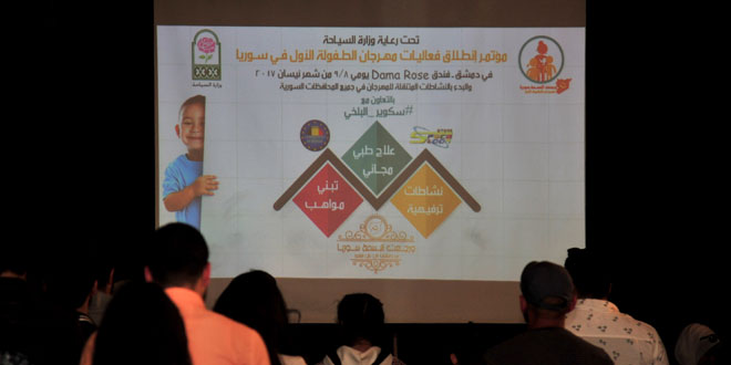 وتنظم المجموعة فعالياتها بالتعاون مع مجموعة “سكوير البلخي” السياحية ومركز “سبيستون” ومن المقرر أن تطلق المجموعة مساء غد مهرجان الطفولة الأول بسورية في فندق داما روز بدمشق ومنها سينطلق إلى المحافظات السورية الأخرى.