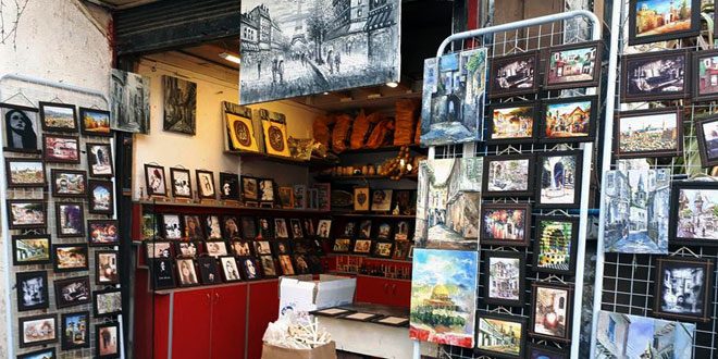 صاحب أحد المعارض في شارع القشلة بباب توما يقول لمراسلة سانا ” لم يسافر مواطن سوري خلال الحرب إلى ألمانيا أو كندا أو بلد أوروبي إلا واقتنى من محلاتنا لوحات تعبر عن الحارات الدمشقية والرقصات المولوية والأبواب الأثرية في دمشق لتذكره بعبق الشام”.