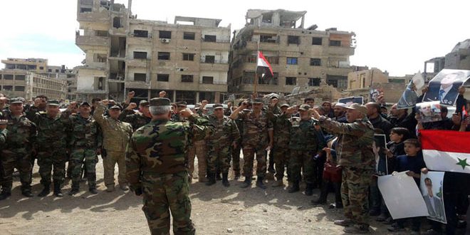 رفع العلم الوطني في عين ترما وجوبر بعد تحريرهما من الإرهاب