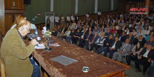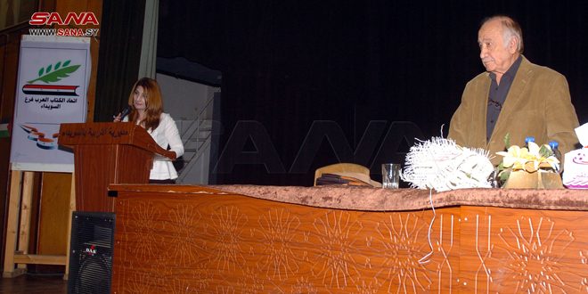 واعتبرت رئيس فرع اتحاد الكتاب العرب بالسويداء وجدان أبو محمود أن محاضرة اليوم تمثل حدثاً استثنائياً مع مفكر وباحث كبير يشكل علامة فارقة في مجال الميثولوجيا وتاريخ الأديان، يستند دوماً إلى جدران ثابتة من الحقائق والأبحاث والأيديولوجيا.