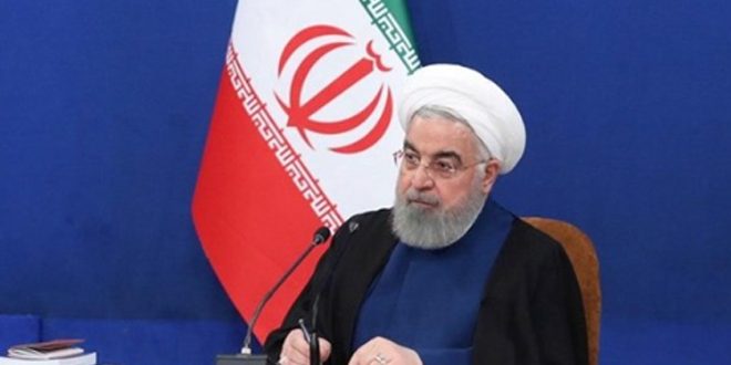 أكد الرئيس الإيراني حسن روحاني أن إيران تواجه هذا العام الحظر الظالم المفروض عليها ومؤامرات الأعداء وفيروس كورونا معا.