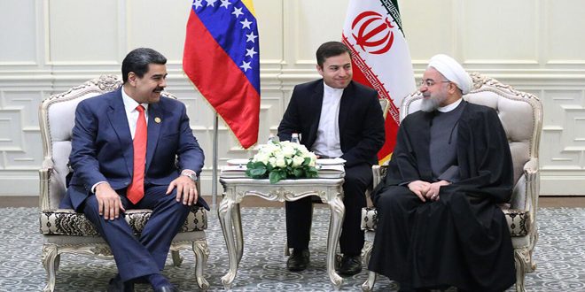 أكد الرئيس الإيراني حسن روحاني خلال لقائه نظيره الفنزويلي نيكولاس مادورو أن مقاومة الشعبين الإيراني والفنزويلي أفشلت مؤامرات الولايات المتحدة.