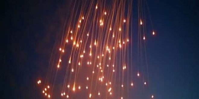 وكانت طائرات (التحالف الأمريكي) قصفت ليلة الخميس الماضية بالقنابل الفوسفورية مبنى المشفى الوطني في مدينة الرقة كما استخدم هذا التحالف قنابل الفوسفور المحرمة دوليا خلال عدوان نفذه في التاسع من حزيران الماضي على الأطراف الغربية لمدينة الرقة والمنطقة الفاصلة بين حيي المشلب والصناعة إضافة إلى حي السباهي ما تسبب باستشهاد 17 مدنيا.