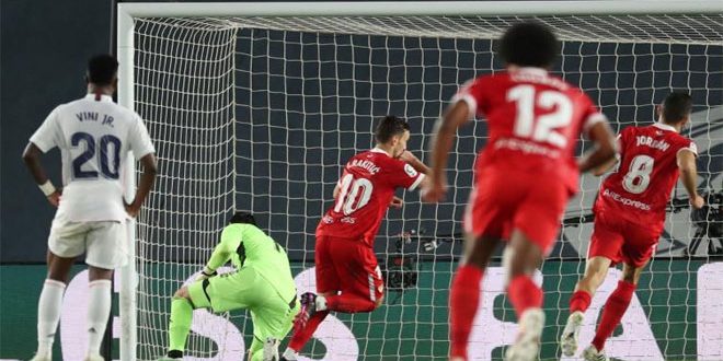 تعادل فريق ريال مدريد مع إشبيلية بهدفين لكل منهما في المباراة التي جمعتهما اليوم في إطار منافسات الجولة الخامسة والثلاثين من الدوري الإسباني لكرة القدم “الليغا”.