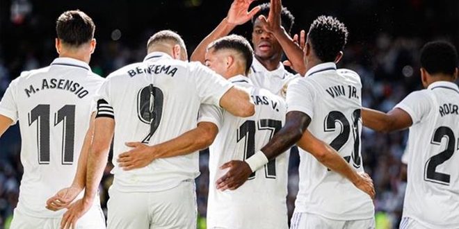 فاز فريق ريال مدريد على ضيفه بلد الوليد اليوم بستة أهداف مقابل لا شيء في إطار منافسات الجولة الـ 27 من الدوري الإسباني.