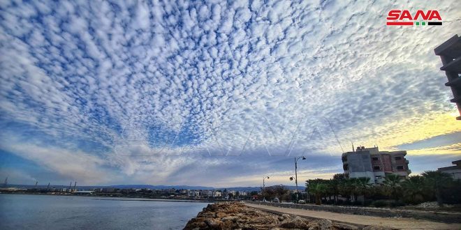وتوقعت المديرية العامة للأرصاد الجوية في نشرتها المسائية أن يكون الجو غدا بين الصحو والغائم جزئيا بشكل عام مع فرصة ضعيفة لهطل زخات خفيفة من المطر فوق المرتفعات الساحلية وباردا ليلا وخاصة في المرتفعات الجبلية محذرة من تشكل الضباب خلال ساعات الصباح الباكر في غوطة دمشق والمنطقة الوسطى والقلمون.