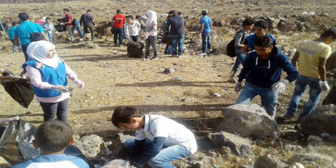 بمشاركة أكثر من 150 متطوعا من شبيبة الثورة وطلائع البعث بالقنيطرة أطلقت مديرية البيئة في المحافظة اليوم حملة للنظافة وزراعة 50 شجرة حراجية في منصف طريق دمشق- القنطرة عند دوار بلدة الكوم الشرقي.
