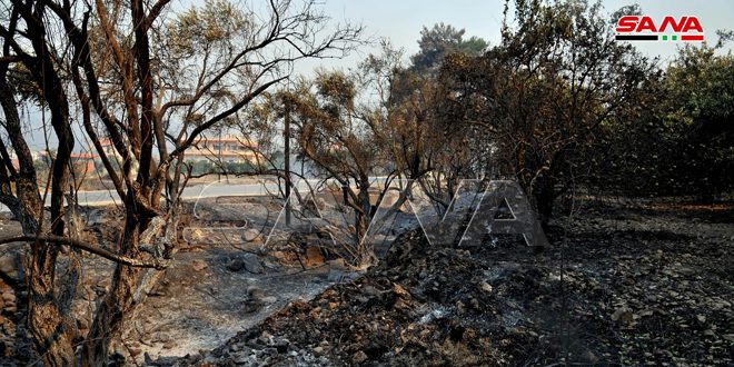 وبين مدير الزراعة المهندس منذر خيربك في تصريح لمراسل سانا أن عدد المتضررين من الحرائق بلغ 13644 مزارعاً بينما تضررت 4500 طن من ثمار الزيتون و17 ألف طن حمضيات بينما بلغ عدد أشجار الحمضيات المحترقة الميتة 201802 شجرة والزيتون 1135609 شجرات والتفاح 3157 شجرة و44795 شجرة من أنواع أخرى من الفاكهة مبيناً أن مجموع الأشجار المتضررة بلغ مليوناً و300 ألف شجرة.