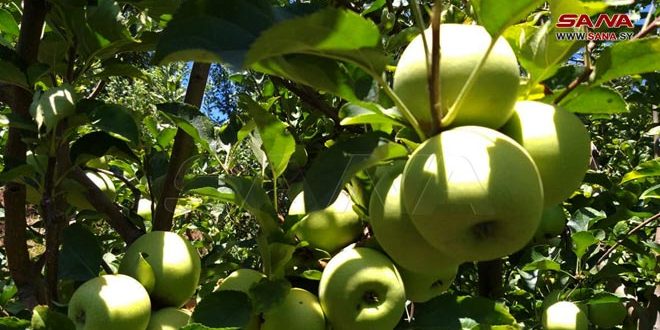 ولفت إلى أن إجمالي المساحة المزروعة بأشجار التفاح يبلغ نحو 28448 دونماً منها 3034 دونماً مروية و25414 دونماً بعلية مشيراً إلى أن موعد نضج المحصول وقطافه يختلف حسب الصنف وغالباً ما يبدأ في شهر حزيران وينتهي في تشرين الأول.