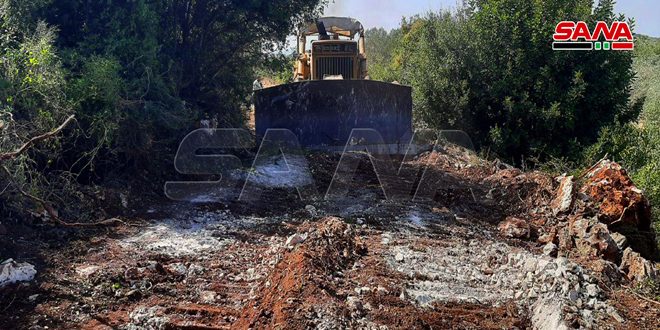 تواصل مديرية زراعة حمص تنفيذ خطتها المتضمنة شق طرق “خطوط نار” في المناطق الحراجية بمنطقة “قرب علي” بريف المحافظة الغربي والتي تعرضت في العاشر من الشهر الجاري لحرائق طالت مساحات واسعة من حراجها.