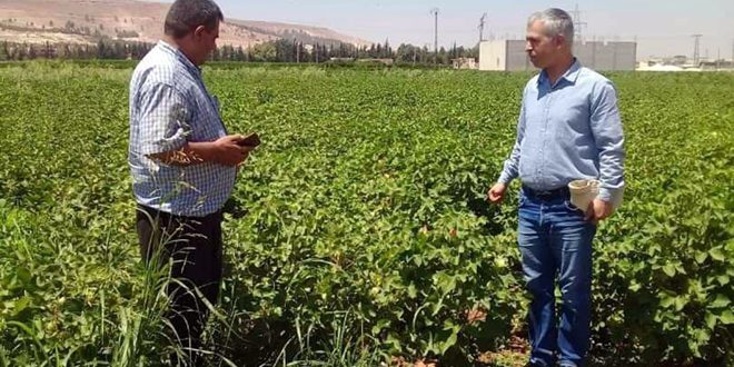 وأكد العلي أنه خلال جولة ميدانية على حقول القطن في مناطق جبل سمعان والسفيرة بحضور رؤساء دوائر الزراعة في كل منطقة لوحظ أن حالة المحصول جيدة جداً ويزرع الصنف حلب 118 المخصص لمحافظة حلب والمحصول في مرحلة تشكل الجوز وتم إطلاق الأعداء الحيوية “الترايكوغراما، الهابروبراكون والمفترس أسد المن” بشكل احترازي لتفادي الإصابة بديدان اللوز، حيث بلغت المساحة المكافحة حيوياً 160 هكتاراً في ريف حلب.