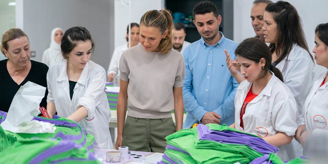 زيارة السيدة الأولى أسماء الأسد لمعمل الألبسة ضمن مجمع المثنى الإنتاجي بريف طرطوس