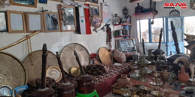 خمسة عشر عاما قضاها مرهج شاهين في جمع المقتنيات التراثية ليجعل لها مكانا بارزا ضمن مضافة منزله في بلدة الثعلة بريف السويداء بما يعكس تمسكه بالموروث المحلي وعشقه للأصالة والتراث.