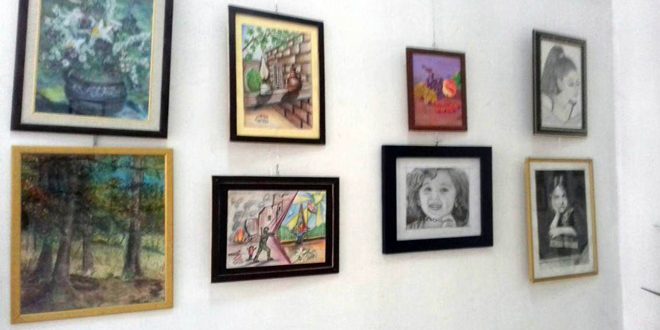 استضافت صالة صبحي شعيب للفنون التشكيلية في حمص معرضا لفنانين هواة قدموا عشرات اللوحات التشكيلية المتباينة.