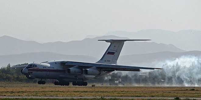 وكانت طائرتان روسيتان تحملان على متنهما 80 طنا من المساعدات الغذائية ومستلزمات طبية واقامة مقدمة من دولة روسيا الاتحادية إلى الشعب السوري وصلت منتصف الشهر الجاري إلى مطار الشهيد باسل الأسد الدولي في اللاذقية.