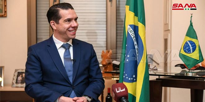 أكد سفير البرازيل في دمشق فابيو فاز بيتالوكا ضرورة تفعيل مجلس الأعمال السوري البرازيلي وتقوية العلاقات بين غرفة صناعة دمشق وريفها والغرفة العربية البرازيلية إضافة إلى أهمية إعادة التبادل التجاري بين سورية والبرازيل إلى سابق عهده .