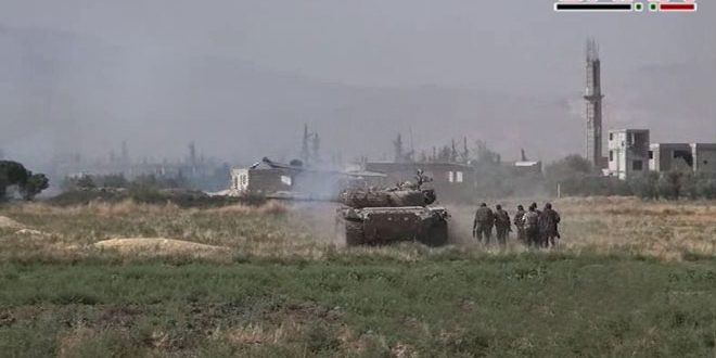 وبدأت وحدات من الجيش والقوات المسلحة بالتعاون مع مجموعات الدفاع الشعبية امس الاول تنفيذ عملية عسكرية على تجمعات إرهابيي تنظيم “داعش” فى ريف حمص الشرقي أعادت من خلالها الامن والاستقرار الى قرى مسيعيد والمشيرفة الشمالية والصالحية وأحكمت سيطرتها على مناطق رجم الطويل وأرض كريز والنقطة 802 شرقى بلدة جب الجراح.