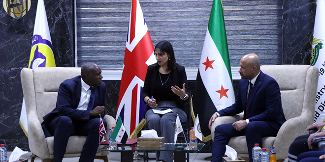 بحث وزير الطوارئ وإدارة الكوارث في سوريا رائد الصالح، مع وزير خارجية المملكة المتحدة ديفيد لامي، سبُل تعزيز التعاون الثنائي في مجالات الاستجابة للطوارئ، والملفات ذات الأولوية، وأهمها إزالة الألغام والذخائر غير المنفجرة، ورفع الأنقاض من المناطق المتضررة.