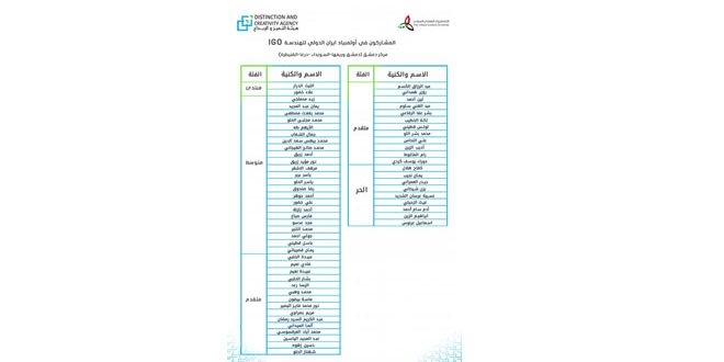 وتجري اختبارات الأولمبياد للمشاركين عبر الانترنت كل فريق في دولته وبالتوقيت نفسه على مدى أربع ساعات متواصلة وتتضمن مسائل عالية في الهندسة حسب بيان لهيئة التميز والإبداع تلقت سانا نسخة منه.