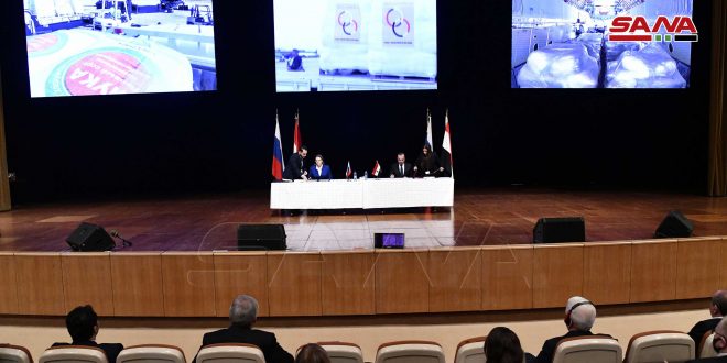 ولفت الوزير مخلوف إلى تعزيز التعاون مع روسيا في إعادة الإعمار معرباً عن شكره لروسيا الاتحادية قيادة وشعباً على المواقف الداعمة لسورية وخاصة الرئيس الروسي فلاديمير بوتين على مواقفه الداعمة لقضايا سورية المحقة.