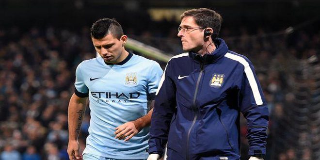 أكد نادي مانشستر سيتي الإنكليزي أن مهاجمه الأرجنتيني سيرخيو أغويرو سيغيب عن الملاعب لأسابيع بسبب إصابة في الركبة.