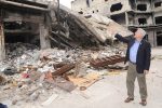 بدوره قدم المحافظ عرضا عن الأضرار التي تعرضت لها المحافظة جراء الاعتداءات الإرهابية عليها مبينا أنه ستكون هناك إعادة إعمار بالكامل للأحياء المتضررة بشكل كبير حيث أجريت دراسات تخطيطية من أجل ذلك ولاسيما لمناطق السلطانية وجوبر وبابا عمرو بينما تم حتى الآن ترميم الأحياء المتضررة بشكل بسيط جراء الأعمال الإرهابية.