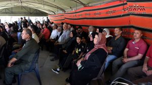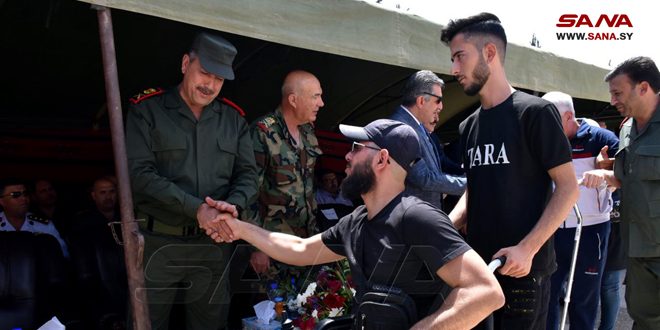 حضر حفل التكريم محافظ حماة المهندس محمد طارق كريشاتي وأمين فرع حماة لحزب البعث العربي الاشتراكي المهندس أشرف باشوري.