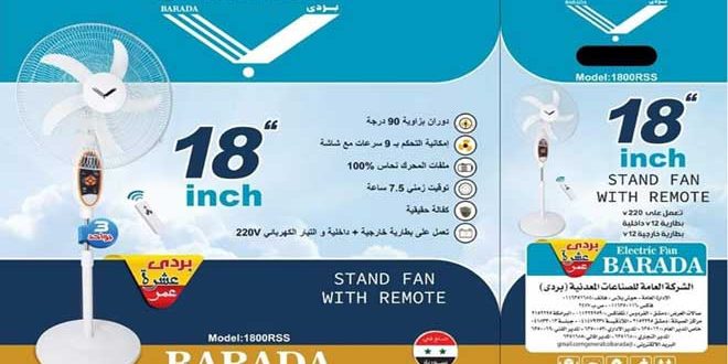 وبالنسبة للمروحة أشار عباس إلى أنها كهربائية عمودية 18 إنشاً وتعمل على التوتر العادي والبطارية الداخلية والخارجية “ثلاثة بواحد” مع جهاز تحكم ومأخذ “يو إس بي” وإضاءة ليد كما أنها ذات 9 سرعات وتم تجريبها على 4 سرعات فعملت على البطارية الداخلية لـ 12 ساعة متواصلة فضلاً عن احتوائها على ميزة وضعية النوم وأناقة الشكل والمظهر وقوة الأداء فمحركها بملف نحاسي 100 بالمئة بينما المروحة الأرضية تعمل على التوتر العادي والبطارية الخارجية “اثنان بواحد” فيما يتمتع صاعق الحشرات بمواصفات عالية وأداء جيد جداً إضافة إلى الفرن الكهربائي 52 ليتراً والذي تقدم معه الشركة صينية كهدية.